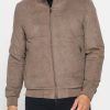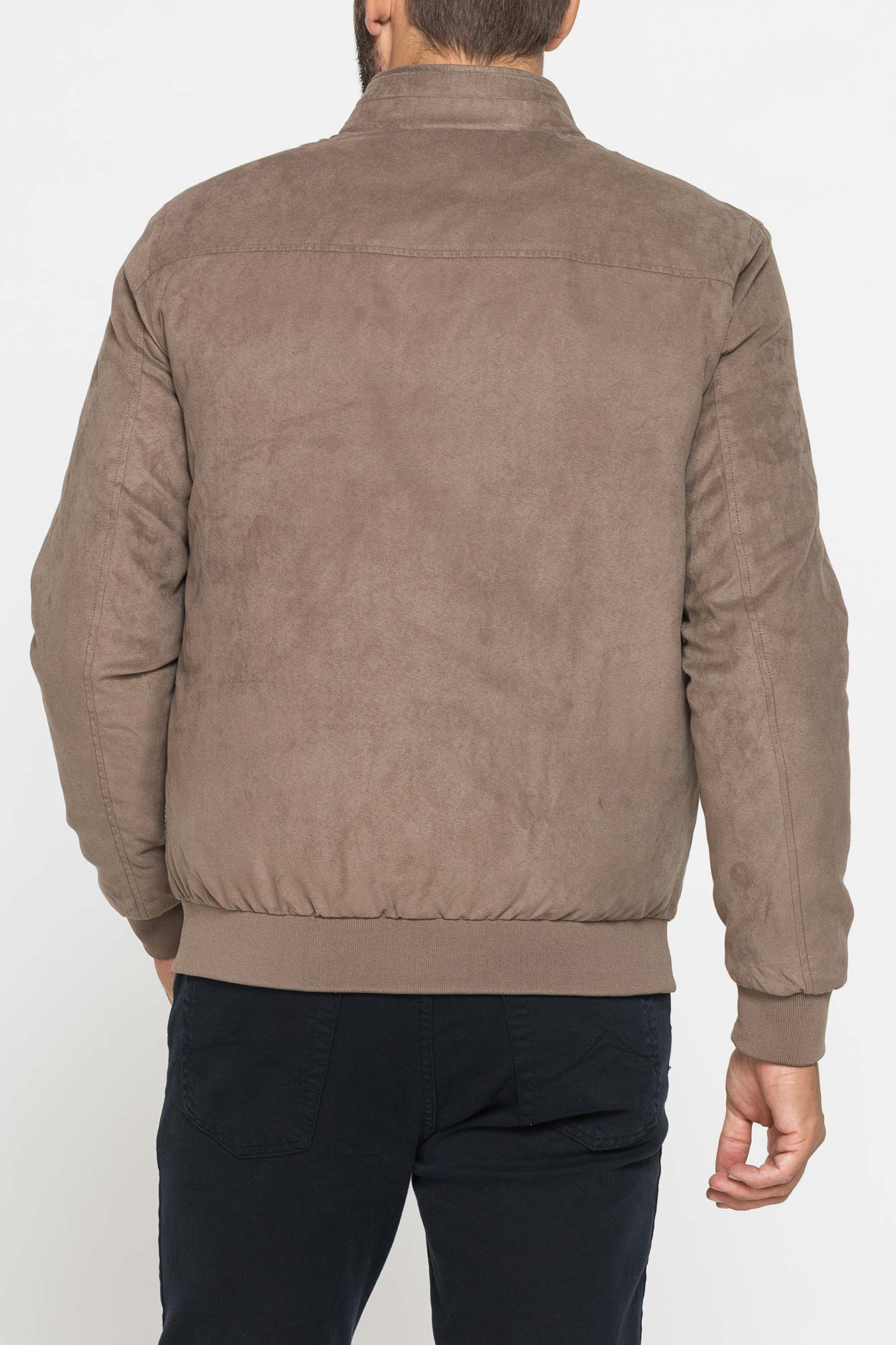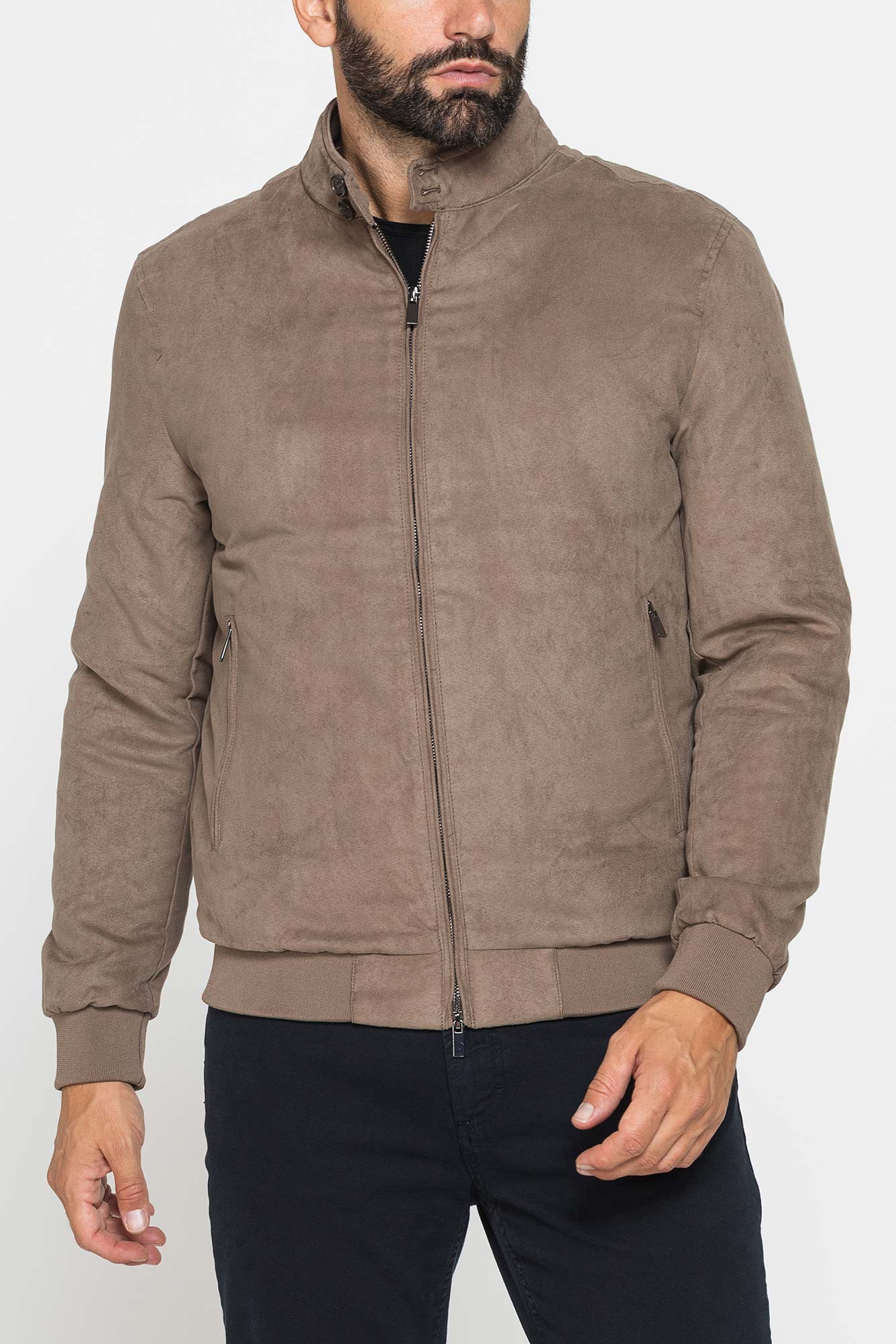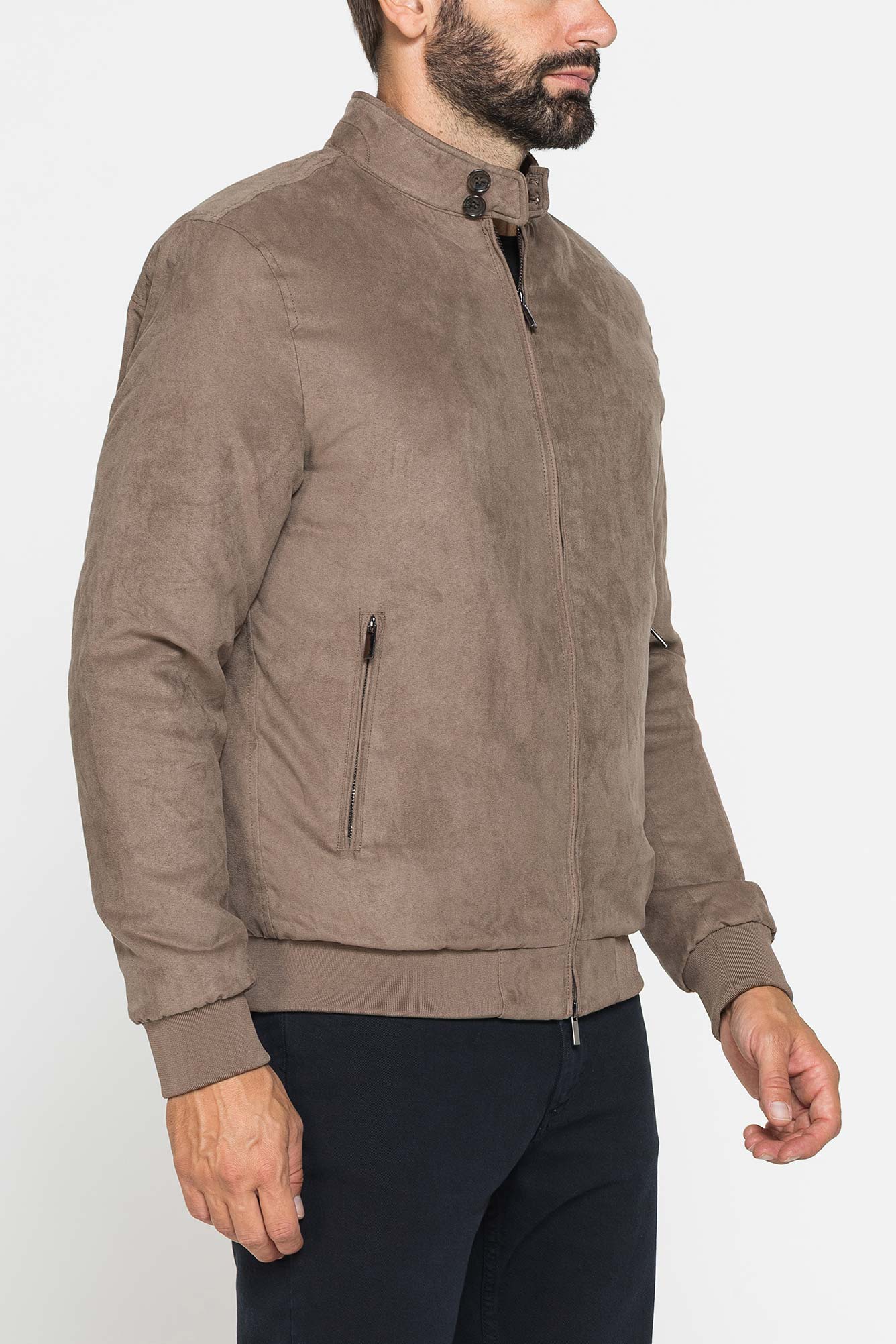 Giubbino bomber con collo leggermente alto e chiusura a due bottoni. Realizzato in Eco-suede, presenta elastici a costina sul fondo e sui polsi, chiusura centrale con zip e due tasche in vita con zip. Un capo versatile e dallo stile contemporaneo, perfetto per completare look casual. – Composizione: 100% Poliestere