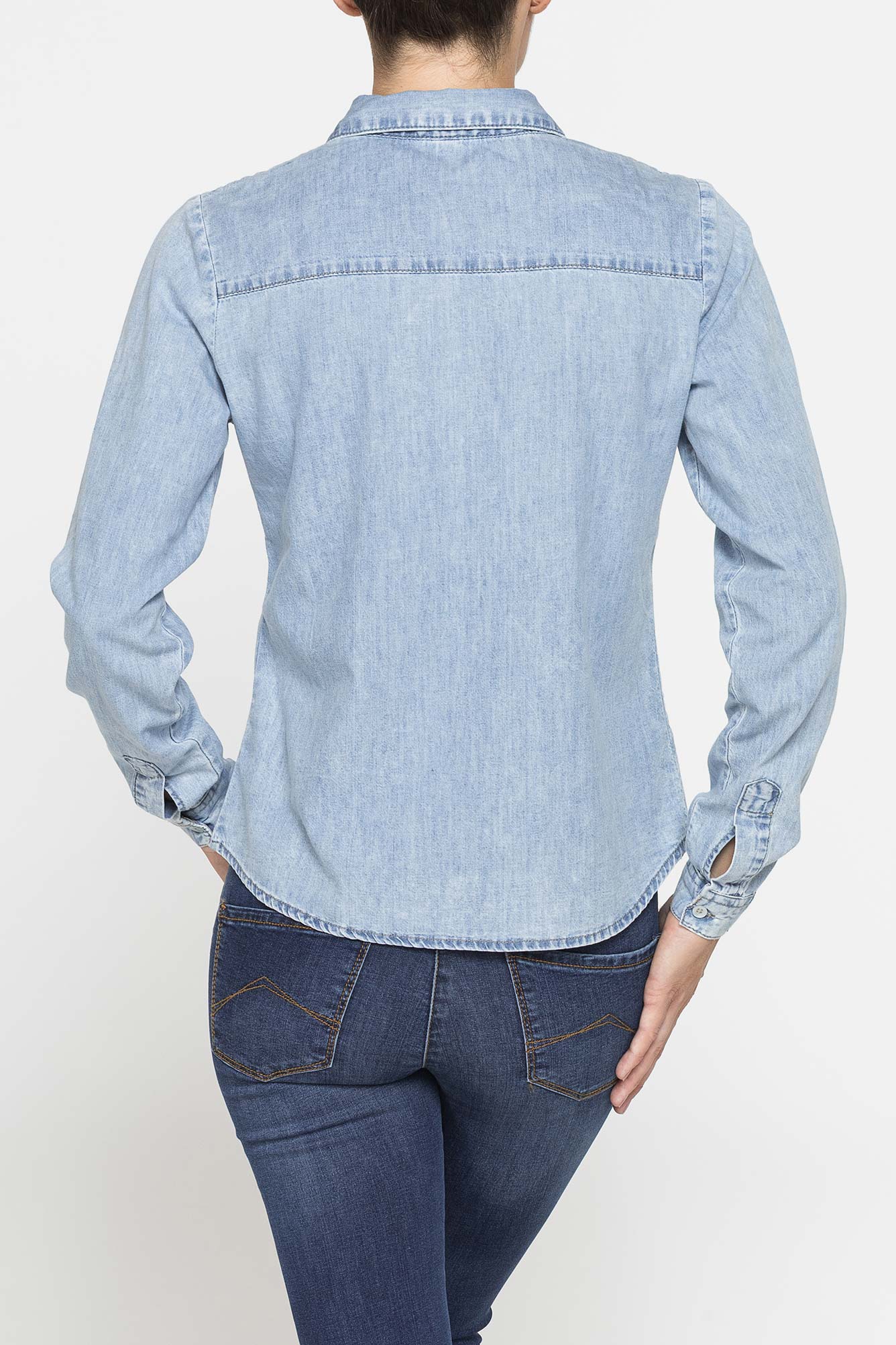 Camicia dalla vestibilit?? regolare in denim leggero impreziosita da piccole decorazioni termoadesive. Collo classico con fascetta e polsino chiuso con bottone. – Composizione: 100% Cotone