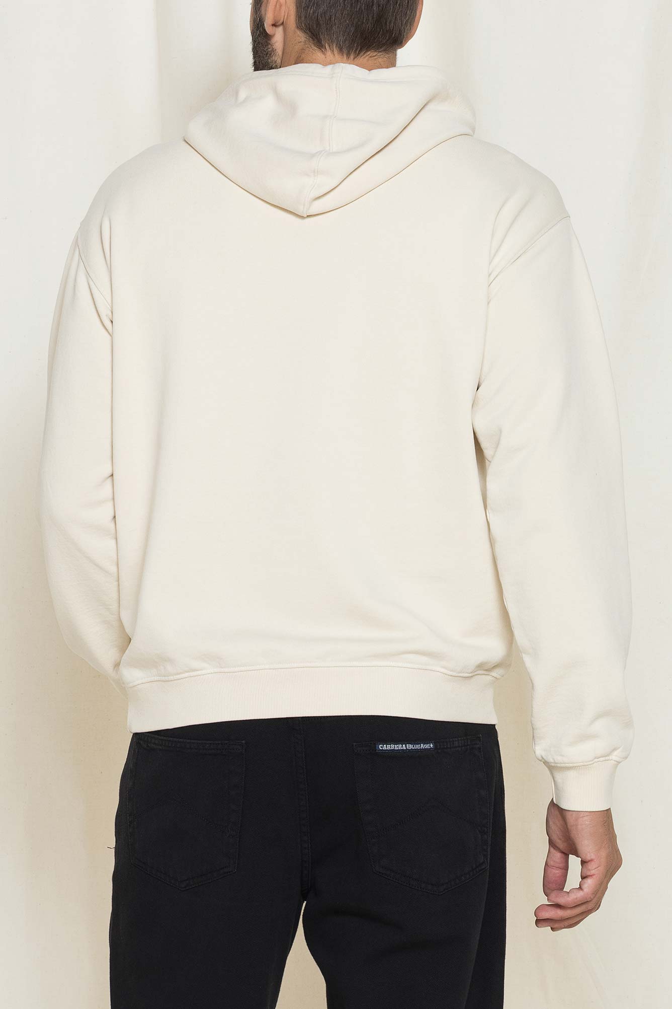 Hoodie dalla vestibilit?? morbida e dal look vintage, impreziosita da una patch ispirata all’archivio storico di Carrera Jeans. Il modello si presenta con cappuccio regolabile e un’ampia tasca frontale, dettagli a costina su polsi e fondo. Tessuto felpa realizzata in cotone 400 gsm. La capsule Replica ripropone modelli iconici degli anni passati, dando vita a una linea di capi autentici dal fascino retr??. – Composizione: 100% Cotone