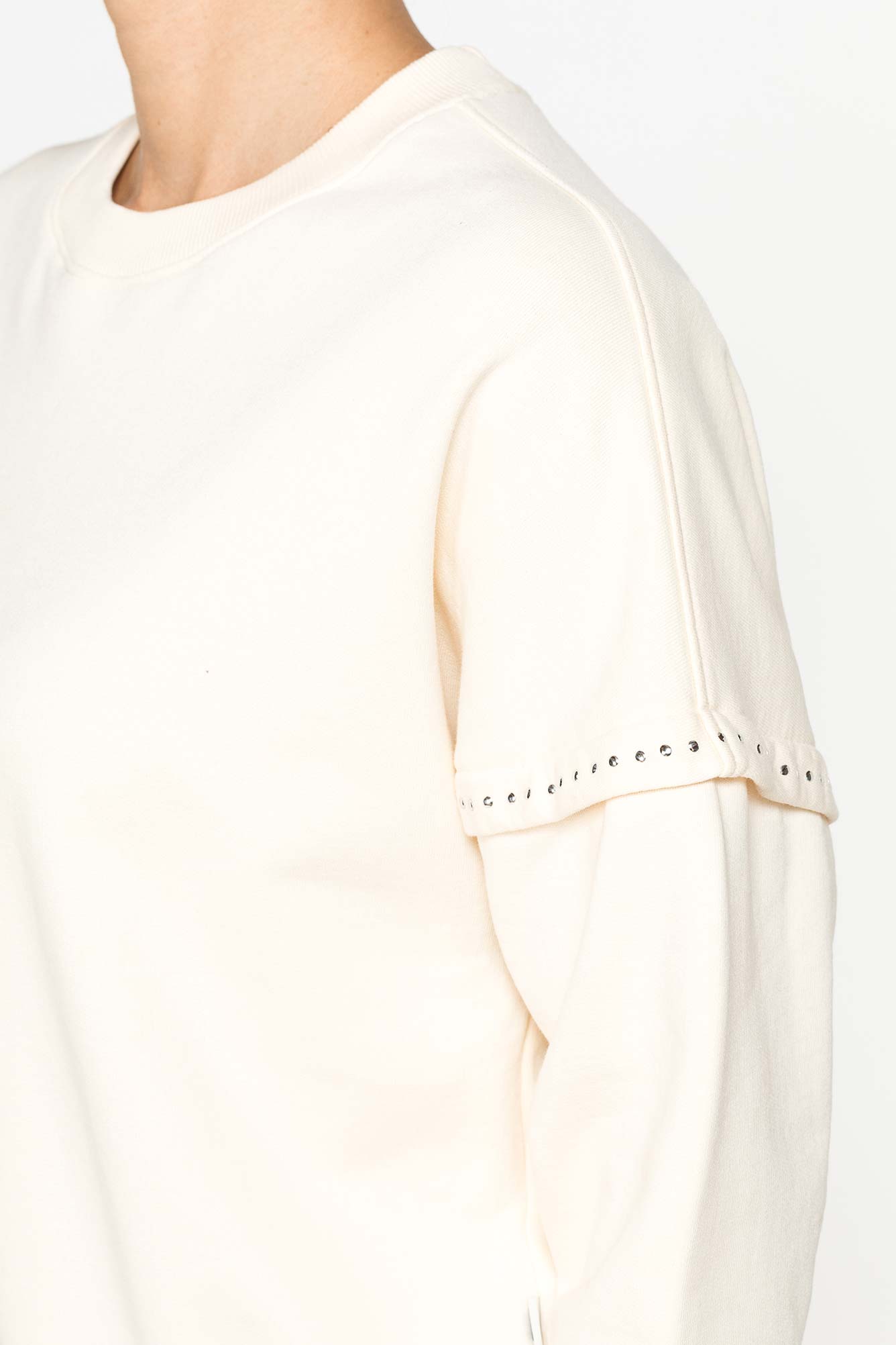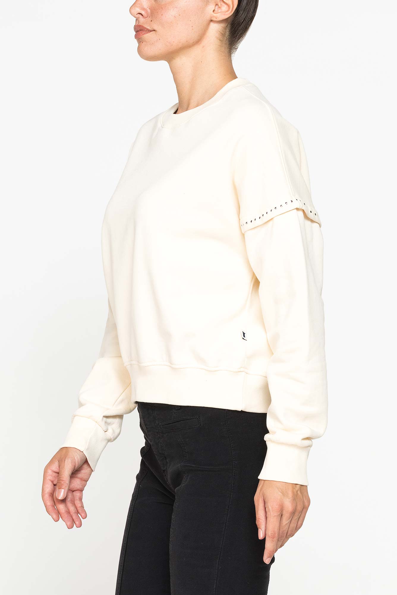 Felpa oversize in morbido French Terry, con girocollo e borchie applicate sul giromanica. Un mix di comfort e carattere per uno stile casual deciso. – Composizione: 100% Cotone