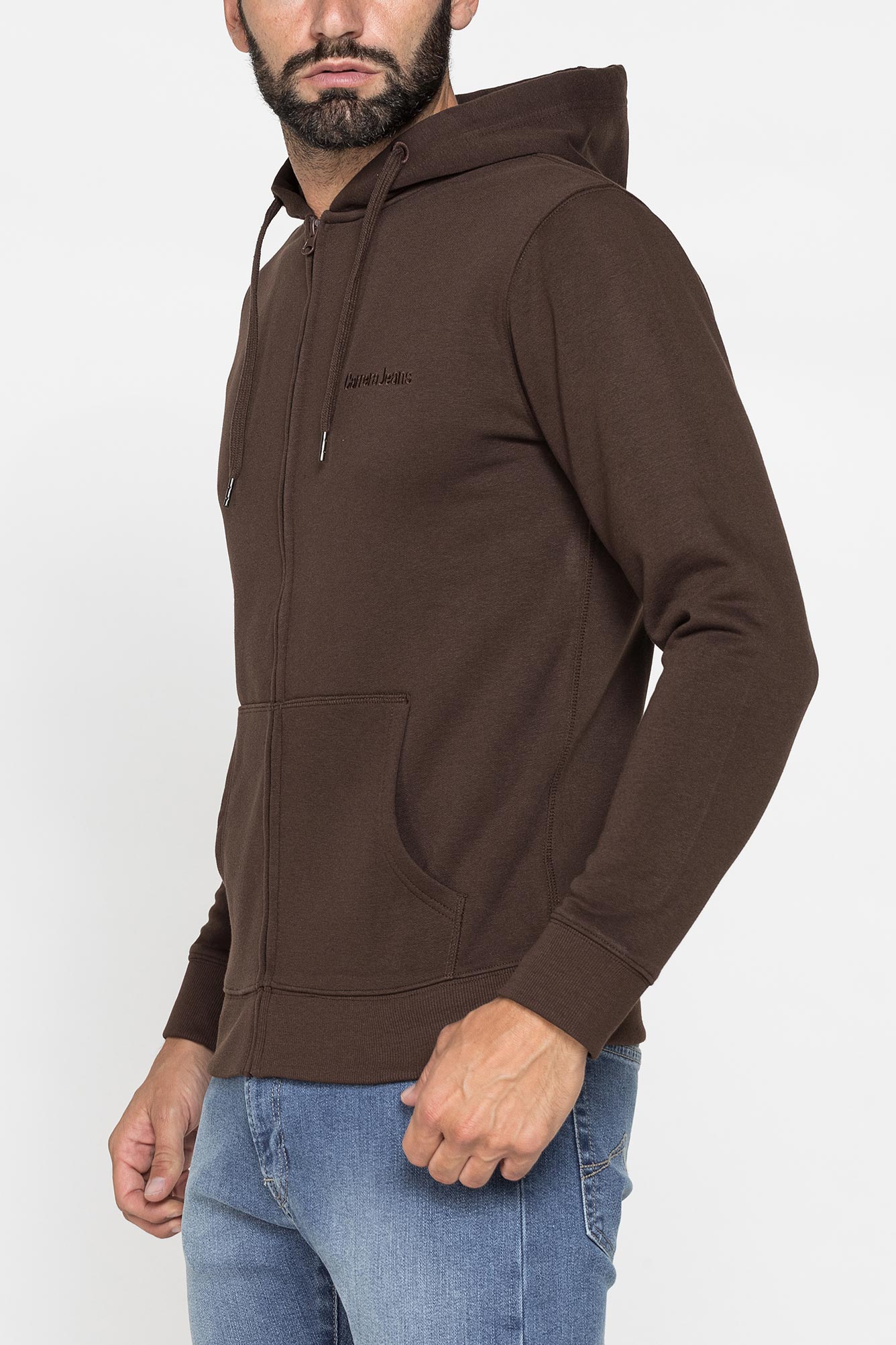 FELPA PESANTE GARZATA CON CAPPUCCIO E ZIP – Composizione: 70% Poliestere, 30% Cotone