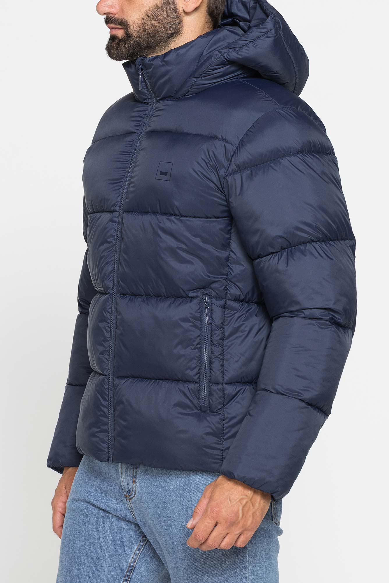 Giubbino corto da uomo con cappuccio, ideale per le giornate pi?? fredde. Modello leggermente elasticizzato in vita, zip centrale a vista, tasche laterali con chiusura zip e taschino interno per gli oggetti personali. Questo capo ?? imbottito in Eco Piuma realizzata con tecnologia Free Down utilizzando solo materiali sintetici per riprodurre gli effetti della piuma. Completano questo modello la trapuntatura larga e la stampa logo sul petto. – Composizione: 100% Poliammide