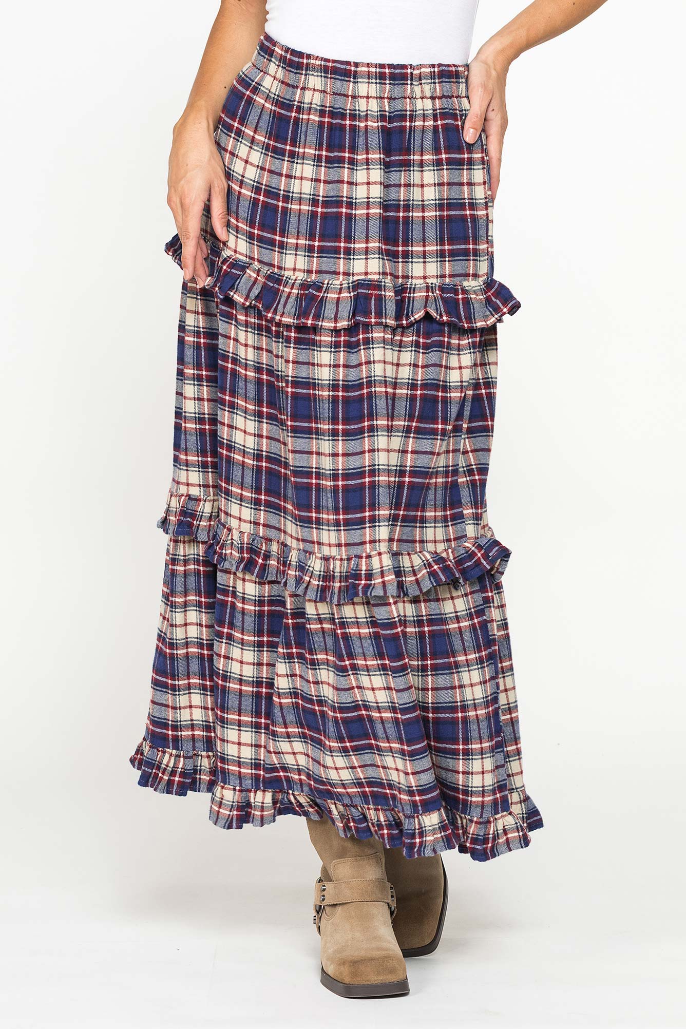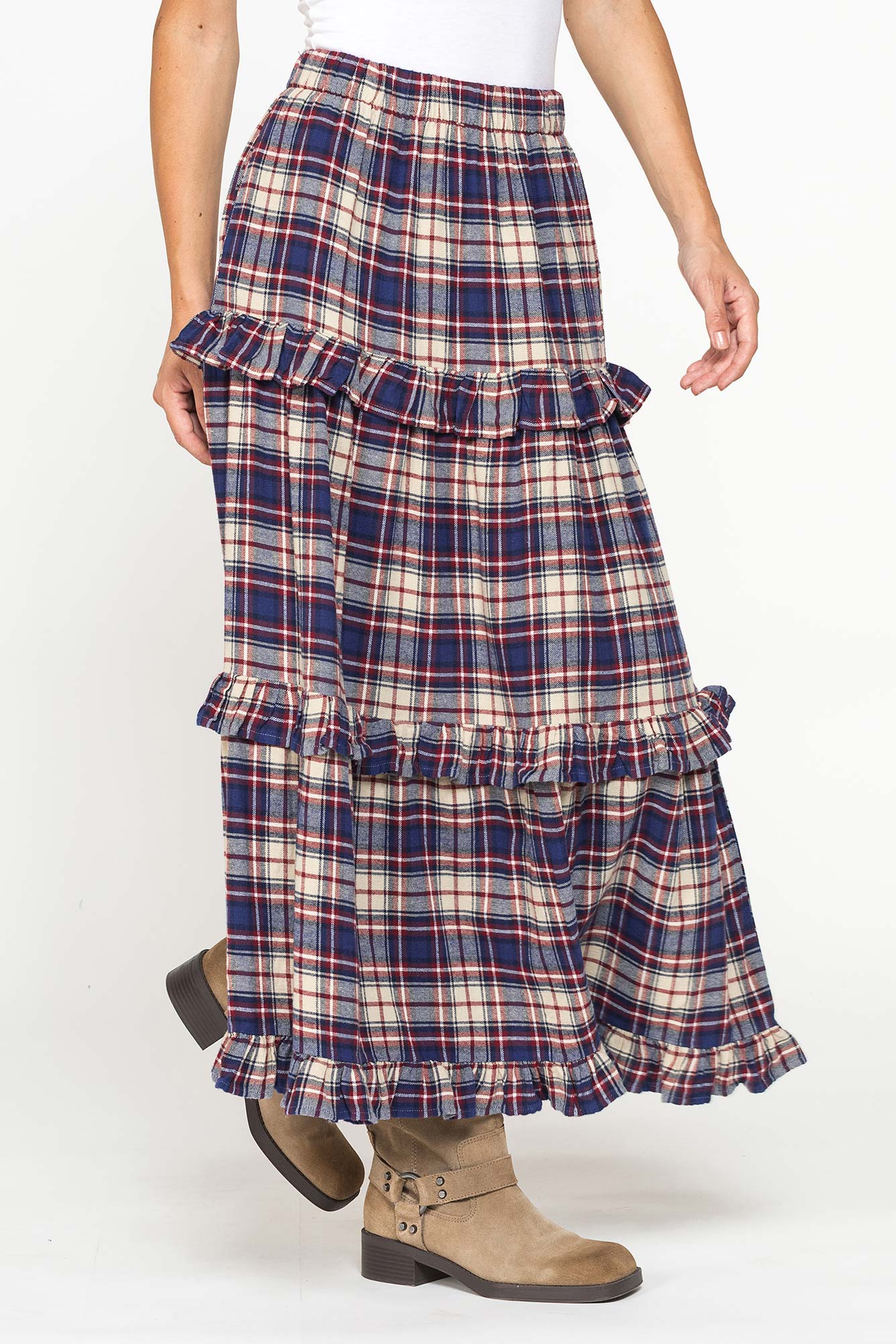 Gonna lunga in morbida flanella, dallo stile country e femminile. Le rouches aggiungono volume e movimento, creando un look romantico e senza tempo. Perfetta da abbinare a stivaletti e camicie per un outfit dal sapore rustico ma curato. – Composizione: 100% Cotone