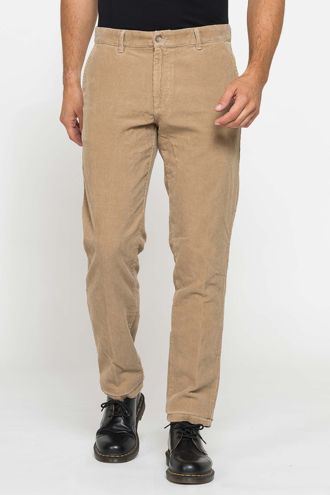 Pantalone chino dal look casual e raffinato, con vita, gamba e fondo regolari. Vestibilit?? comoda sulla coscia senza risultare aderente. Presenta tasche davanti alla francese, tasche dietro a filetto con bottone, passanti in cintura e chiusura centrale con bottone e zip. Realizzato in velluto 1000 righe di cotone tinto in pezza, un tessuto pregiato che dona lucentezza e rende il capo elegante e versatile. – Composizione: 100% Cotone